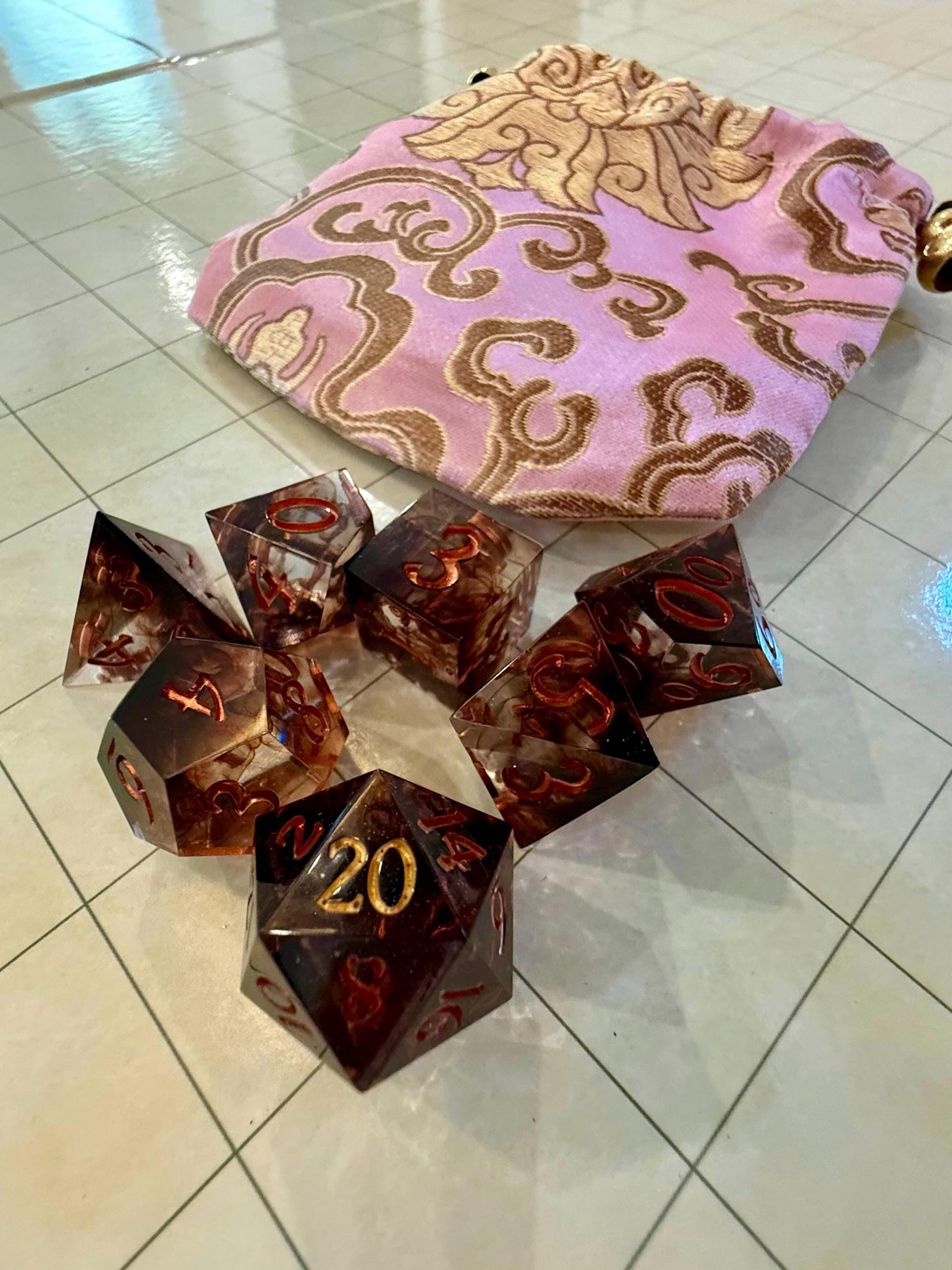 Elevate your tabletop gaming with stunning and beautiful handmade sharp-edged resin dice sets. Whether you play Dungeons & Dragons, Pathfinder, or even OSR RPGs like myself, you can find something here for any character! Message for help, questions, or custom work!
