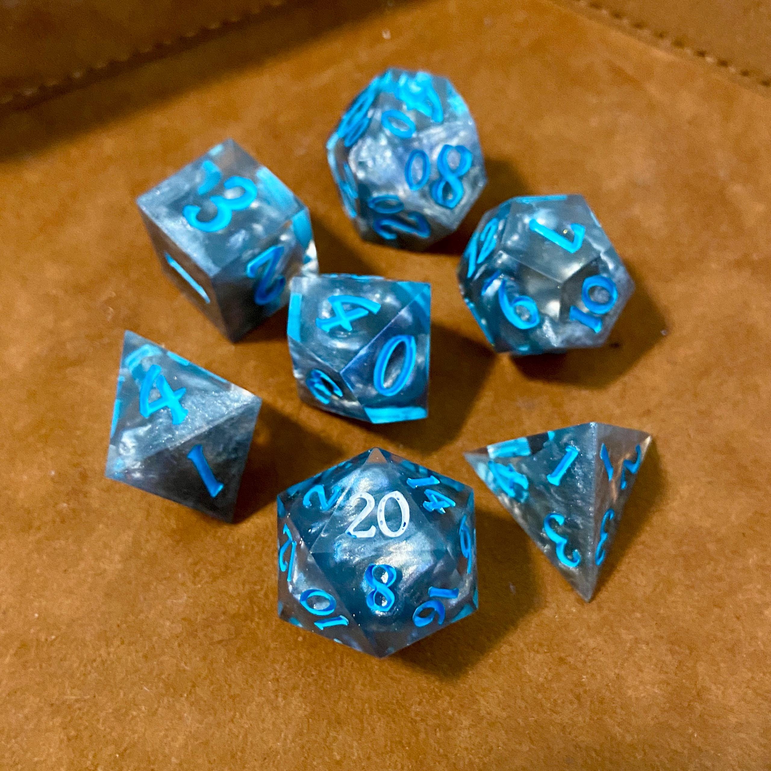 Storm Cloud - Sharp DnD Dice - Clear Opaque - Handmade resin dice set for Tabletop Gaming - Dungeons & Dragons, Pathfinder, Cthulhu
