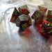 Handmade sharp edge resin dice for Dungeons & Dragons and many other TTRPGs, in a blood red with black smoke, the ancient secret.