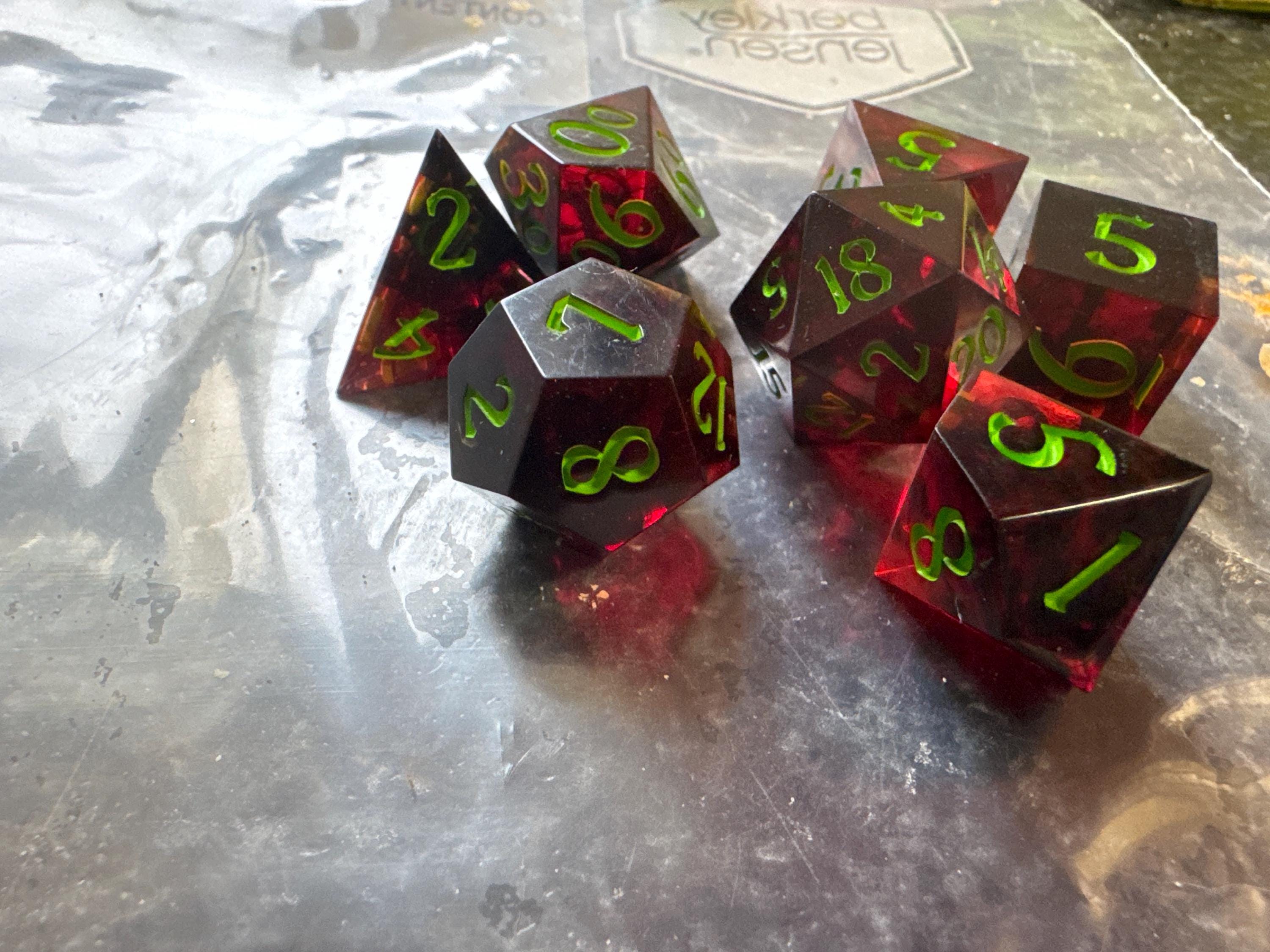 Elevate your tabletop gaming with stunning and beautiful handmade sharp-edged resin dice sets. Whether you play Dungeons & Dragons, Pathfinder, or even OSR RPGs like myself, you can find something here for any character! Message for help, questions, or custom work!