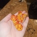 Pros: Beautiful color, I love how it glimmers in the light, perfect for any flame themed characters. Mine is a phoenix sorcerer, but the pyromancer dice had the vibe I was going for. The gold font makes it regal without feeling like too much. The sharpness also makes my rolls feel a bit more assertive! Cons: The filling for the gold has holes in it :( this is probably something that comes with the process of making them which is understandable, but I mistook the dips for chipped paint which made me question the quality and crafting of this. It's very pretty, but it's only because of this that it feels pretty off. The shipping also took quite a while, if you're going to buy them I recommend doing so 1 1/2 months in advance if it's time sensitive. But Finally? I LOVE THESE DICE!!!!! They're very gorgeous!