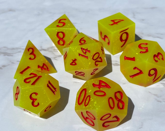 Sand Dragon - Sharp DnD Dice - Glitter - Handmade resin dice set for Tabletop Gaming - Dungeons & Dragons, Pathfinder, Cthulhu, Cyberpunk